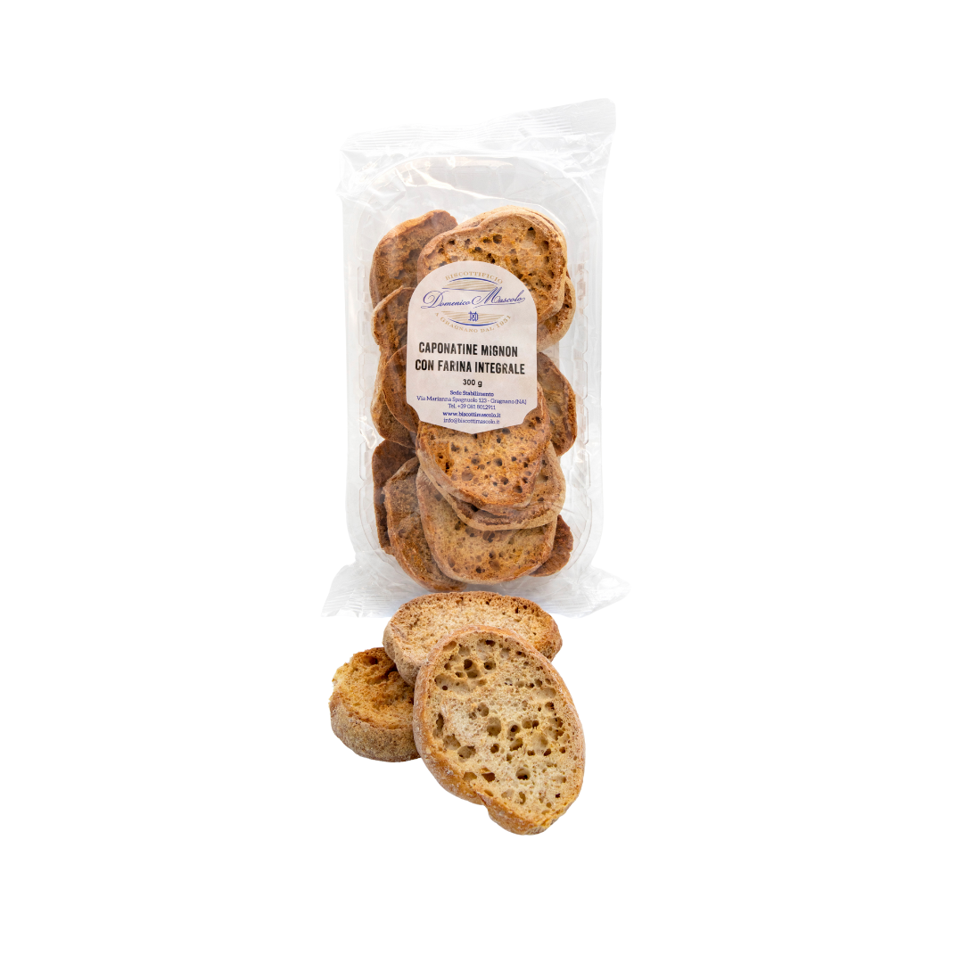 Deliziosa caponata mignon da 300g, realizzata con farina integrale e lavorazione artigianale: impastata, lievitata, cotta e biscottata per offrire una consistenza croccante e un gusto autentico. Perfetta da gustare con zuppe, insalate o da accompagnare a piatti tipici siciliani. Prodotto da forno ideale per un’alimentazione sana e ricca di fibre.